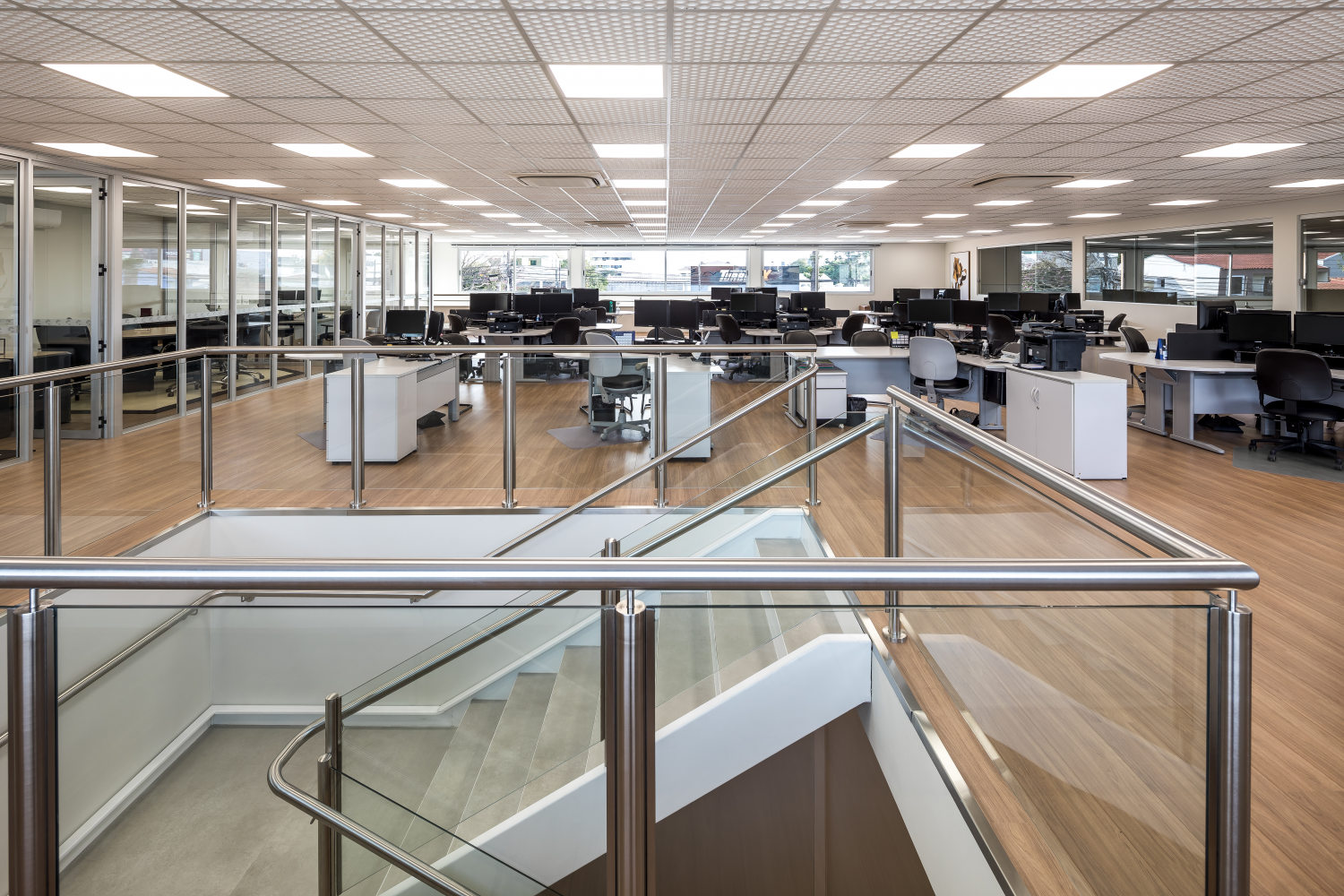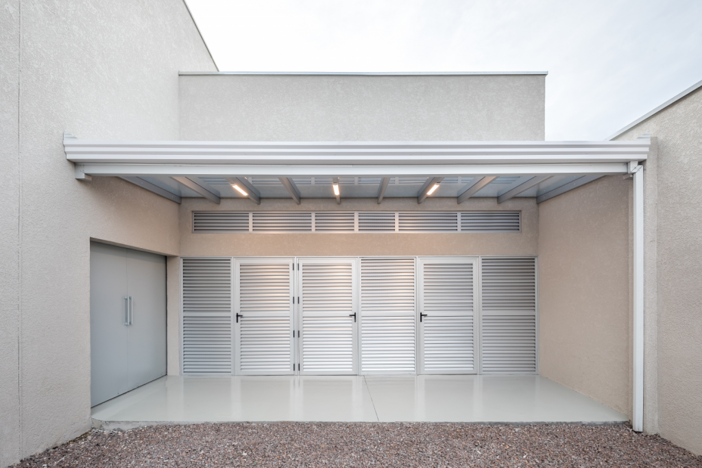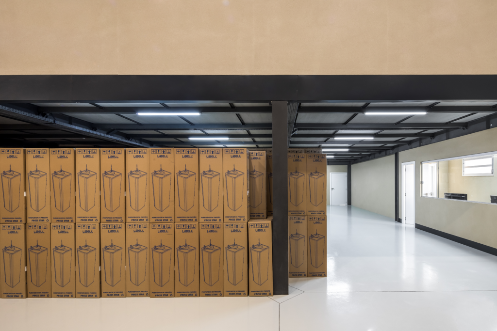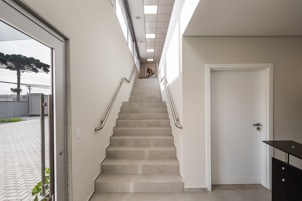 Sede para empresa no Hauer, em Curitiba. A projeto consistiu em reformar um galpão – utilizado para manutenção de caminhões – em um escritório moderno e uma área de depósito. Foram construídas duas paredes (a fachada frontal e posterior) e construído um mezanino em estrutura metálica. A utilização desse sistema construtivo permitiu o melhor aproveitamento do pé direito já existente.